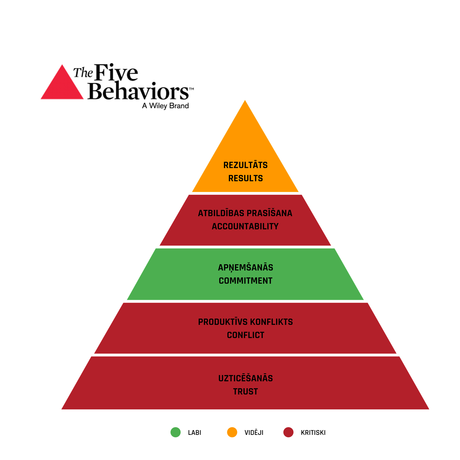 Vienotas komandas piecu uzvedību modelis fundamentāli izskaidro komandas rīcības, kas ir pamats, lai radītu vienotu un uz rezultātu fokusētu komandu.